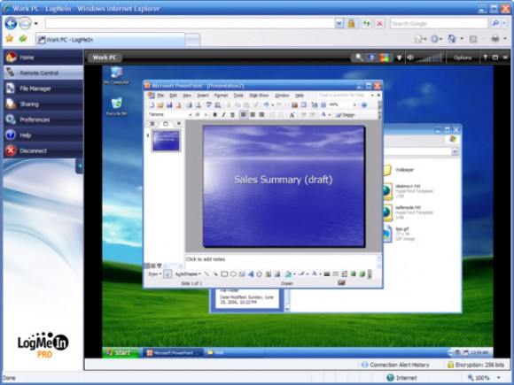 LogMeIn是一款基于Web的安全可靠的远程接入软件,它具有强大的控制功能,可以让用户在任何一个可以上网的电脑上控制家中的PC或者办公室的PC。软件支持强大的256-bit SSL加密,双密码验证,RSA SecureID。它也同样简单、易用。